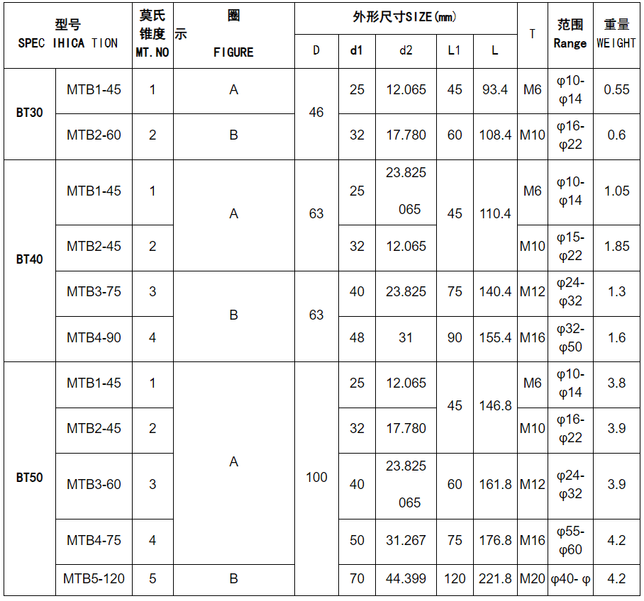 • BT-MTB莫氏雛套刀柄